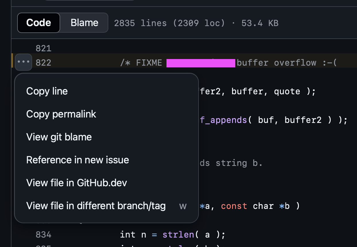 För att kopiera raden du har hittat i ett GitHub repository sÄ kan du klicka pÄ de tre punkterna bredvid raden, sedan klicka pÄ "Copy Permalink" och ange nedan.